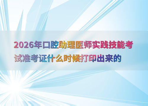 2026年口腔助理医师实践技能考试定于6月6日至11日举行,准考证打印时间因地区而异,通常在考前1-2周开放。