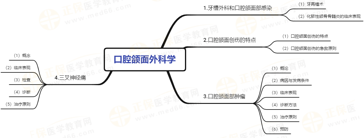 口腔主治医师相关专业知识考试中会涉及【口腔颌面外科学】的内容,为了帮助各位考生更好地复习,医学教育网为大家整理【口腔颌面外科学】知识点地图如下: