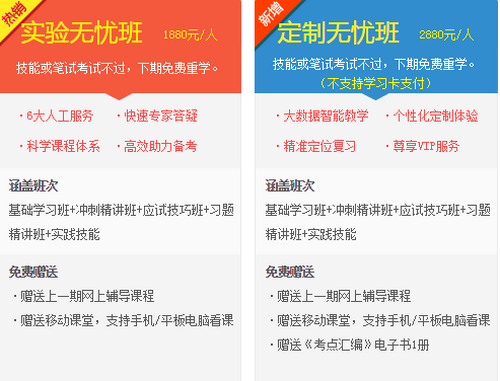 医学教育网临床助理医师考试辅导培训班目前有特色直达班、精品无忧班、实验无忧班、定制无忧班四个班次。辅导会针对每个考生的不同学习状况,进行有针对性的讲解、训练、答疑、模考,并对学习过程进行跟踪、分析、指导,从整体上大幅提升学员的考试通过率。早报名,早准备,早成功。