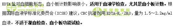 双草酸盐抗凝剂:草酸钾可使红细胞体积缩小,草酸铵则可使红细胞胀大,两者按适当比例混合,恰好不影响红细胞形态和体积,可用于血细胞比容、CBC、网织红细胞计数等项目检查。双草酸盐抗凝剂可使血小板聚集、影响白细胞形态,不适于血小板计数、白细胞分类计数。