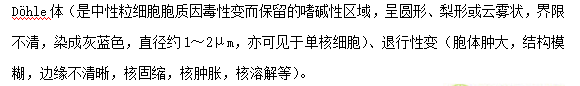 中毒颗粒(比正常中性颗粒粗大,大小不等,分布不均匀,染色较深,呈黑色或紫黑色);空泡(单个或多个,大小不等);