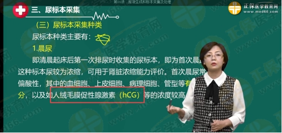 晨尿即清晨起床后第一次排尿时收集的尿标本,即为首次晨尿。这种标本尿较为浓缩,可用于肾脏浓缩能力评价。首次晨尿常偏酸性,其中的血细胞、上皮细胞、病理细胞、管型等有形成分,以及如人绒毛膜促性腺激素(hCG)等浓度较高。