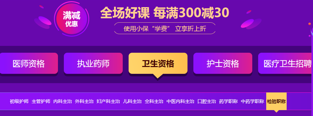 医学教育网年中钜惠活动火热进行中,以为错过活动的你,千万不要灰心。为助力各位考生更好的准备2020年的检验职称考试,活动除了满300减30的优惠,还有正小保的学费可以领,快来看看吧>>>