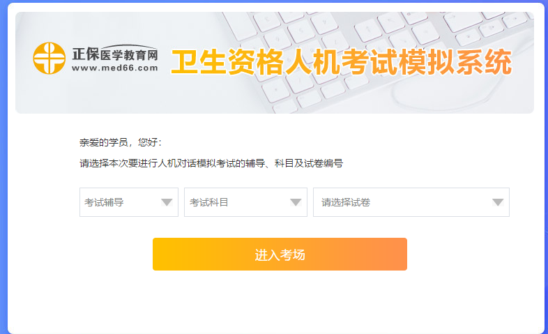 为了帮助考生们提前了解机考形式、适应考试环境、熟悉答题规则,医学教育网特开发了与真实考试环境相同的卫生资格人机模考系统,供大家练习!