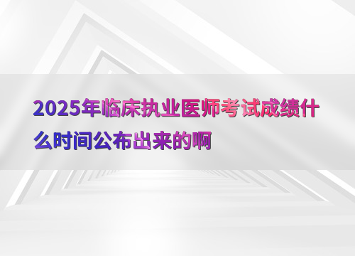 2025年临床执业医师综合考试成绩预计在9月公布,参考近年时间规律,考后约1个月左右可查分。