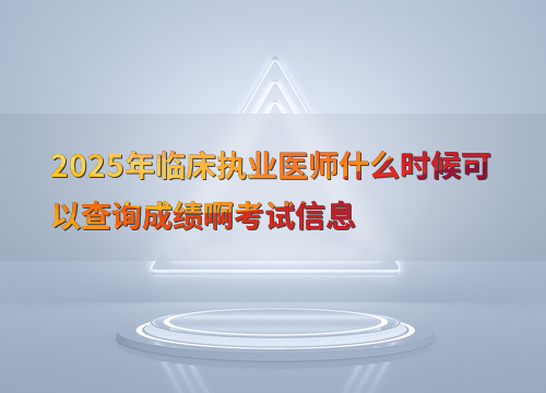 2025年临床执业医师综合考试成绩预计在9月公布,参考近年数据,一般考后1个月左右可查。