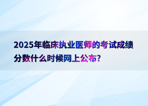 2025年临床执业医师综合考试成绩预计在9月公布,参考近年时间规律(如2024年9月13日、2023年9月19日),考后约一个月为常见周期。