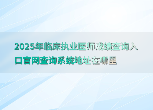2025年临床执业医师综合考试成绩已经于9月23日公布。