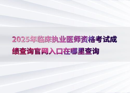 2025年临床执业医师综合考试成绩已于9月23日公布。