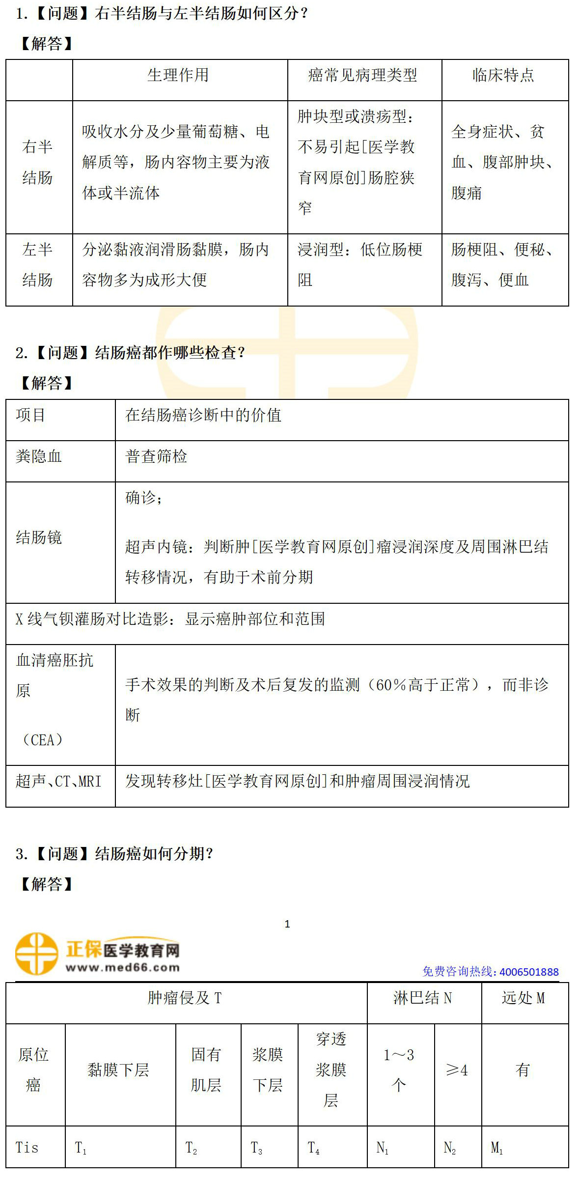结肠癌是常见的发生于结肠部位的消化道恶性肿瘤,三张表格给大家总结考试常考点,并且希望大家通过这三个表格[医学教育网原创]掌握结肠癌相关知识点,并避免考试丢分。