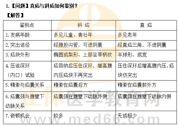 1.【问题】直疝与斜疝如何鉴别?