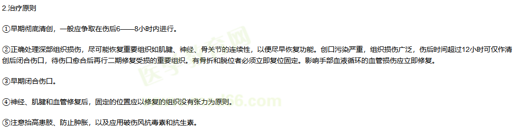 1.现场急救:目的是止血,减少创口进一步污染,医学|教育网防止组织损伤加重以及迅速转运。