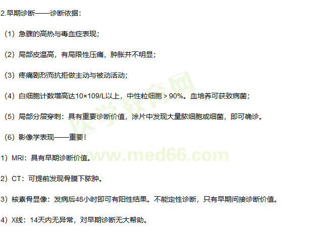 以上为“临床执业医师“急性血源性骨髓炎”考点解析”全部内容,希望可以帮到您!更多的文章随时关注医学教育网临床医师辅导精华栏目!