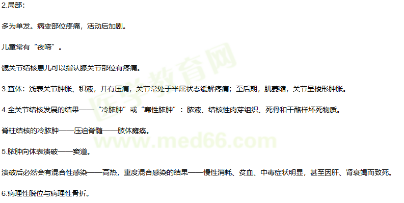 以上为“临床执业医师运动系统考点“骨与关节结核”解析”全部内容,希望可以帮到您!更多的关于考试资料的文章随时关注医学教育网临床执业医师辅导精华栏目!