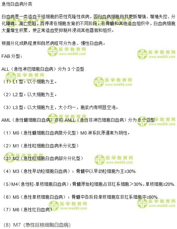 关于临床执业医师《血液系统》考点“急性白血病分类”,相信大家都想掌握,为方便大家备考,在此医学教育网小编为大家整理如下内容: