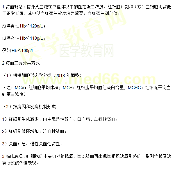 关于临床执业医师《血液系统》考点“贫血的概述”,相信大家都想掌握,为方便大家备考,在此医学教育网小编为大家整理如下内容: