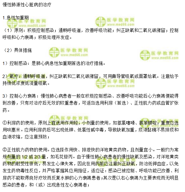 关于临床执业医师《呼吸系统》:慢性肺源性心脏病的治疗,相关考点,相信备考2020年临床执业医师考试的考生都在关注,为方便大家学习,在此医学教育网小编为大家整理如下内容: