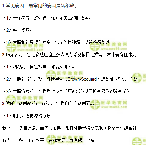 针对临床执业医师精神神经系统中“脊髓压迫症”相关考点,相信大家都在认真学习,为提高备考效率,在此医学教育网小编为大家整理如下内容: