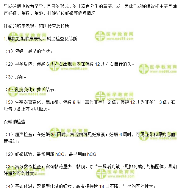 针对临床执业医师女性生殖系统中“妊娠的临床表现、辅助检查及诊断”相关考点,相信大家都在认真学习,为提高备考效率,在此医学教育网小编为大家整理如下内容: