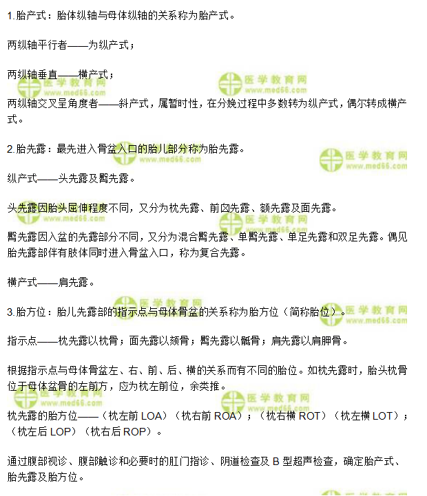 针对临床执业医师女性生殖系统中“胎产式、胎先露、胎方位”相关考点,相信大家都在认真学习,为提高备考效率,在此医学教育网小编为大家整理如下内容: