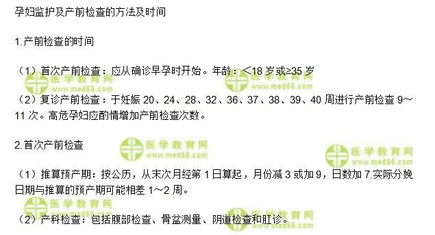 以上为“临床执业《女性生殖系统》考点:孕妇监护及产前检查的方法及时间”全部内容, 由医学教育网小编整理,更多文章请随时关注医学教育网临床执业医师考试栏目!