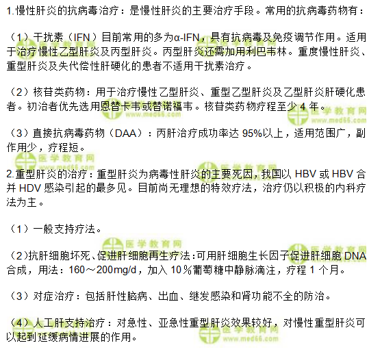 关于“临床执业《传染病、性传播疾病》考点:慢性肝炎、重型肝炎的治疗”相关内容,相信参加临床执业医师考试的考生都想了解,为方便大家备考,在此医学教育网小编为大家整理如下内容:
