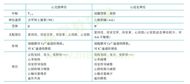1.心交感神经节后神经元末梢释放的递质为去甲肾上腺素,与心肌细胞膜上的β型肾上腺素能受体结合,可导致心率加快、房室交界的传导加快、心房肌和心室肌的收缩能力加强。这些效应分别称为正性变时作用、正性变传导作用和正性变力作用。