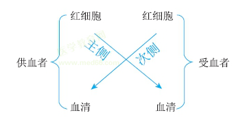 2.输血原则一般应输同型血,输血前必须进行交叉配血试验;如果主、次侧均不发生凝集反应,可输血。如果主侧(供血者红细胞与受血者血清)不发生凝集反应、次侧(受血者红细胞与供血者血清)发生凝集反应,在紧急情况下可谨慎地少量缓慢输血。
