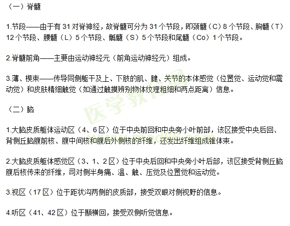 关于“临床执业医师解剖学科目“神经系统解剖”考点”相关内容,相信参加临床执业医师考试的考生都在关注,为方便大家学习,在此医学教育网小编为大家整理如下内容: