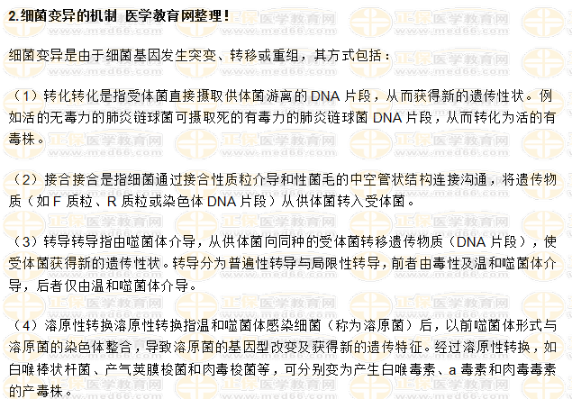 关于“临床执业医学微生物必背点:细菌的遗传与变异”相关内容,相信备考临床执业医师考试的考生都在关注,为方便大家学习,在此医学教育网小编为大家整理如下内容: