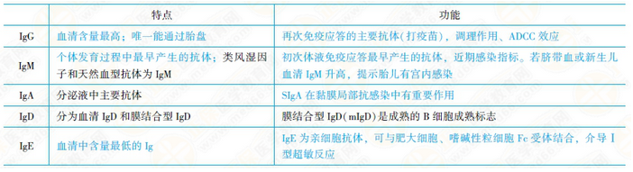 4.各类免疫球蛋白的主要功能特点(2019调整)