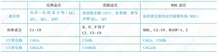 1.补体系统是一组存在于血清、体液及细胞表面、具有精密调控机制的蛋白质系统。多种微生物成分、抗原-抗体复合物等可循三条既独立又交叉的途径,启动丝氨酸蛋白酶级联酶解反应而激活补体,发挥调理吞噬、溶解细胞、介导炎症和清除免疫复合物等功能。