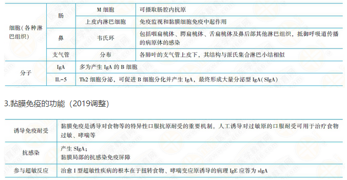 1.黏膜免疫(2019调整):黏膜是病原体入侵机体的最初部位,因此黏膜免疫担负了重要的早期和局部抗感染免疫的重担,特别对于经黏膜途径感染的病原体(结核杆菌、流感病毒、HIV等)的清除至关重要。