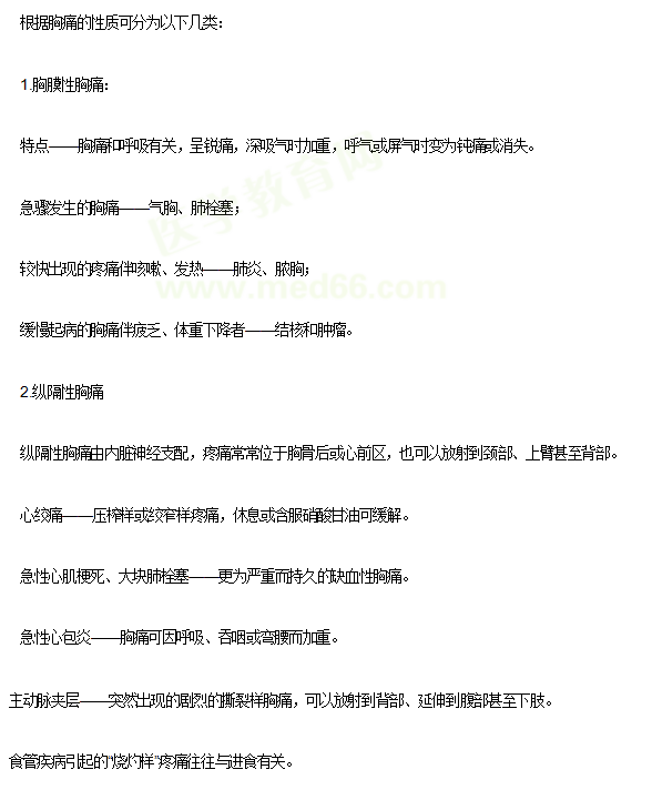 关于“临床执业外科学实践综合-胸痛的常见考点”相关内容,相信参加临床执业医师考试的考生都在关注,为方便大家了解,在此医学教育网小编为大家整理如下内容: