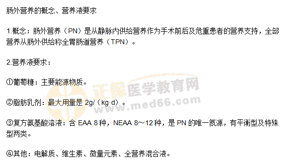 关于“临床执业医师其他考点:肠外营养的概念、营养液要求”相关内容,相信参加临床执业医师考试的考生都在关注,为方便大家了解,在此医学教育网小编为大家整理如下内容: