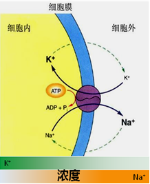 钠泵:细胞膜上的【Na+-K+依赖式ATP酶】。