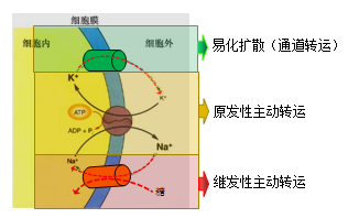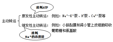 举例 | 钠泵、钙泵、质子泵等,例如:钠泵逆浓度将Na+泵至细胞外、K+泵至细胞内 | 葡萄糖、氨基酸在小肠和肾小管的吸收;甲状腺上皮细胞聚碘 |