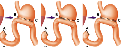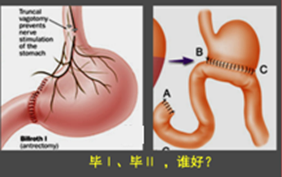 ①毕Ⅰ式:在胃大部切除后,将残留胃直接和十二指肠吻合;