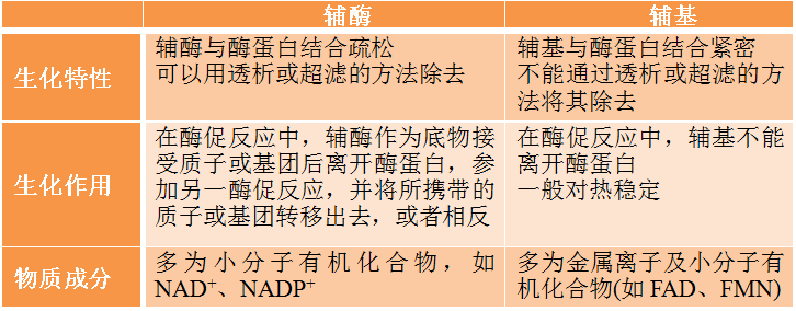 (2)辅助因子的分类 辅助因子按其与酶蛋白结合的紧密程度及作用特点不同,分为辅酶和辅基。