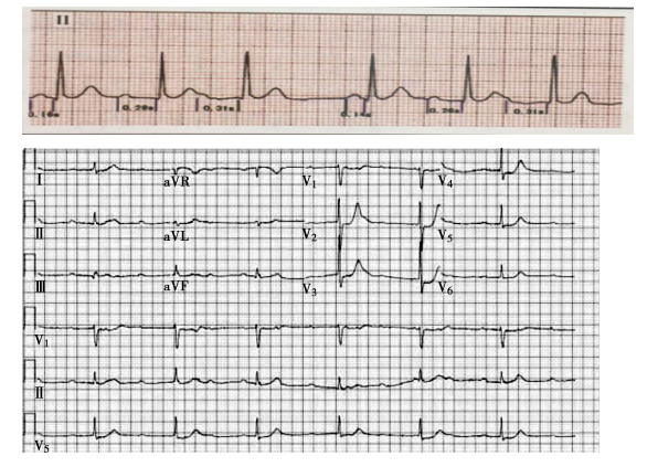 (2)QRS波群时限<0.12s,QRS波群形态无异常,P-R间期为0.12——0.20s。