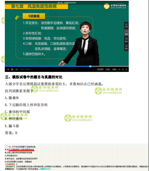 本年度考试难度整体居中,多数学员认为第一、二单元偏难,通过分析,考虑主要原因是基础科目题目居多,大家将绝大部分的复习时间用于临床科目,所以很多题目不知道从何入手;第三、四单元,多数学员回复,老师课程上基本讲解到了,可以做到“秒杀”,开心到不得了。但是,今年模拟试题目确实更加的偏向临床化,考查的更加细致,用学员的话来说是很“绕”,很多情况下,需要把知识点掌握透彻,不断分析,才能得出一个正确答案。