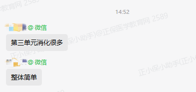 考生反馈(简单):部分考生反馈第三单元整体都比较简单,消化考的多。也有很多考生反馈汤老师讲的很多考点都考到了。