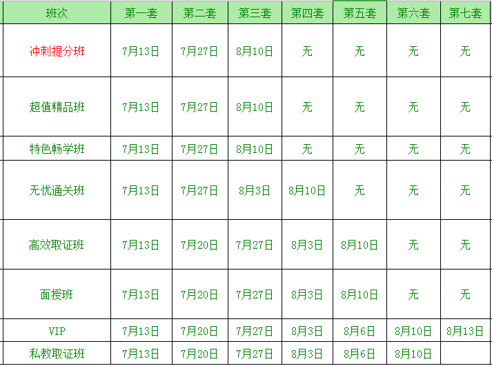 5、私教取证班为6套模拟试卷;
