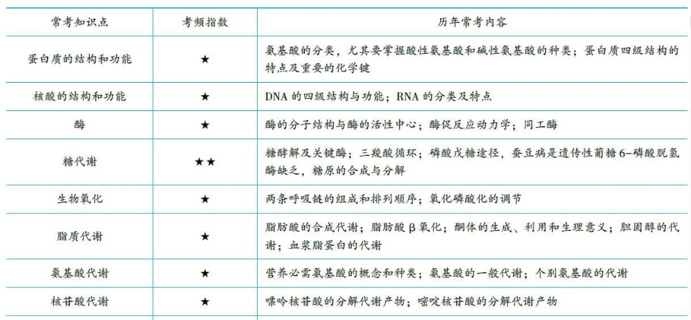 生物化学作为医师的基础科目,主要考查蛋白质的结构和功能、核酸以及糖、脂肪和蛋白质三大物质的代谢。与临床疾病相关联的考点,如分子病、蚕豆病、白化病、痛风病、黄疸、苯丙酮尿症等疾病与生物化学有关的知识点。建议考生: