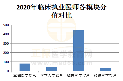 1.2020年医师资格考试临床执业医师类别的考试内容由基础医学综合、医学人文综合、临床医学综合、预防医学综合模块组成,满分600分。
