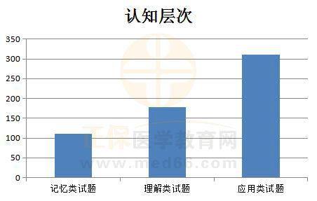 3.从题型上而言,分为A1、A2、A3/A4、B型题,而从认知层次上划分,分为记忆类试题、理解类试题、应用类试题。可以看出国家医学考试要求的是全面的人才,尤其是“应用类”人才,此类题目占总分的51.8%,所以,我们要努力让自己成为擅于运用知识进行独立思考、解决实际问题的人。有18.5%是记忆类题目,既然是记忆类题目只要多听多学多记,就能拿下这些分值。有29.7%是理解类题目,我们要学会转化信息、推断疾病及诊疗方法。