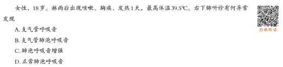考生往往苦于没有合适的例子和题目进行练习,本书在这一部分的讲解中除了有讲解考点精讲,心肺听诊还有实战模拟,通过扫描二维码可以听到一些典型的心音和呼吸音,这样就能够把理论应用于实践,简便快捷。