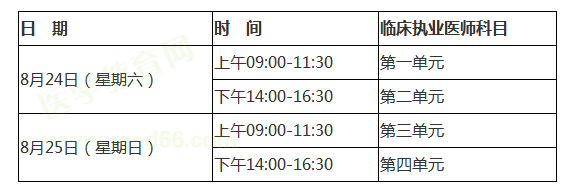 临床执业医师医学综合笔试一试考试于8月24、25日两天举行,临床执业医师笔试考试为2天,分4个单元,每单元均为两个半小时。考试形式为纸笔作答。