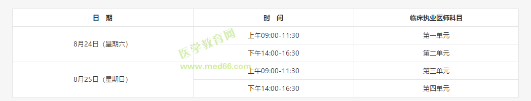 二、2019年临床执业医师医学综合笔试全国统一考试时间为8月24日和25日: