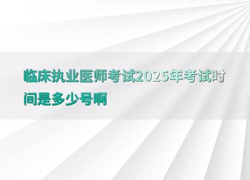 2025年临床执业医师综合笔试定于8月23日至24日举行,共两天。